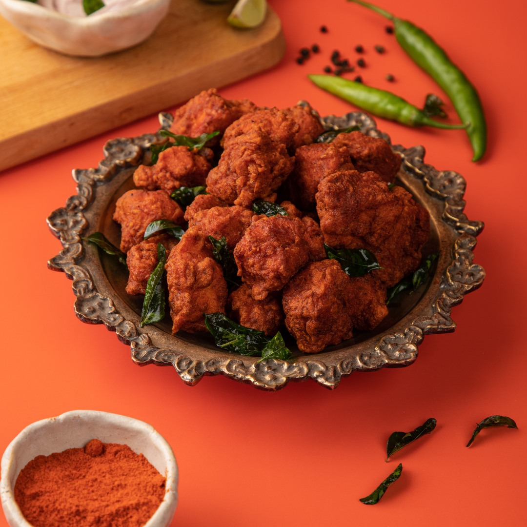 Fiery, deep-fried chicken bites with bold spices and flavors.